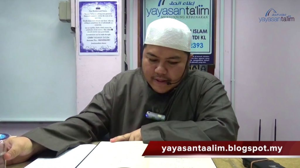 Kelas Ustaz Yunus Zainal (hafizahullaah) Serial Aqidah Islam [Jilid 3]: Dunia Jin & Syaitan karangan Dr Umar Sulaiman Al Ashqar. Setiap Selasa 8:15 malam di Yayasan Ta’lim ———————————————————————- Yayasan Ta’lim adalah sebuah badan dakwah yang berdaftar di bawah Jabatan Perdana Menteri (PPAB-02/2009) untuk menyampaikan ilmu-ilmu agama yang sahih kepada masyarakat melalui kelas-kelas pengajian, pengedaran bahan […]