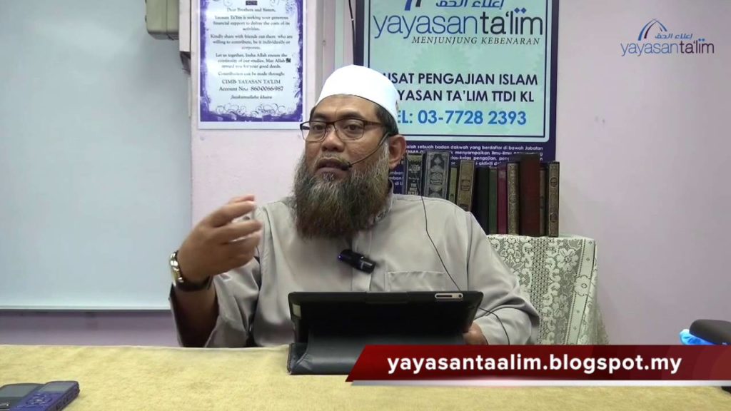 Kelas Talbis Iblis oleh Ustaz Kariman pada hari Sabtu 5 April 2014 di Yayasan Ta’lim. Kitab: Talbis Iblis (Perangkap Syaitan) karangan Imam Ibn Al-Jauzi (W. 597H) Setiap Sabtu diselang seli dengan kelas Asma’ul Husna 8:00 pagi. ———————————————————————– Yayasan Ta’lim adalah sebuah badan dakwah yang berdaftar di bawah Jabatan Perdana Menteri (PPAB-02/2009) untuk menyampaikan ilmu-ilmu agama […]