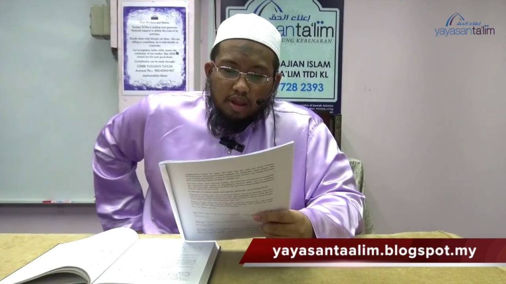 Kelas Talbis Iblis oleh Ustaz Kariman pada hari Sabtu 17 Disember 2016 di Yayasan Ta’lim. Kitab: Talbis Iblis (Perangkap Syaitan) karangan Imam Ibn Al-Jauzi (W. 597H) Setiap Sabtu 8:00 pagi. ———————————————————————– Yayasan Ta’lim adalah sebuah badan dakwah yang berdaftar di bawah Jabatan Perdana Menteri (PPAB-02/2009) untuk menyampaikan ilmu-ilmu agama yang sahih kepada masyarakat melalui kelas-kelas […]
