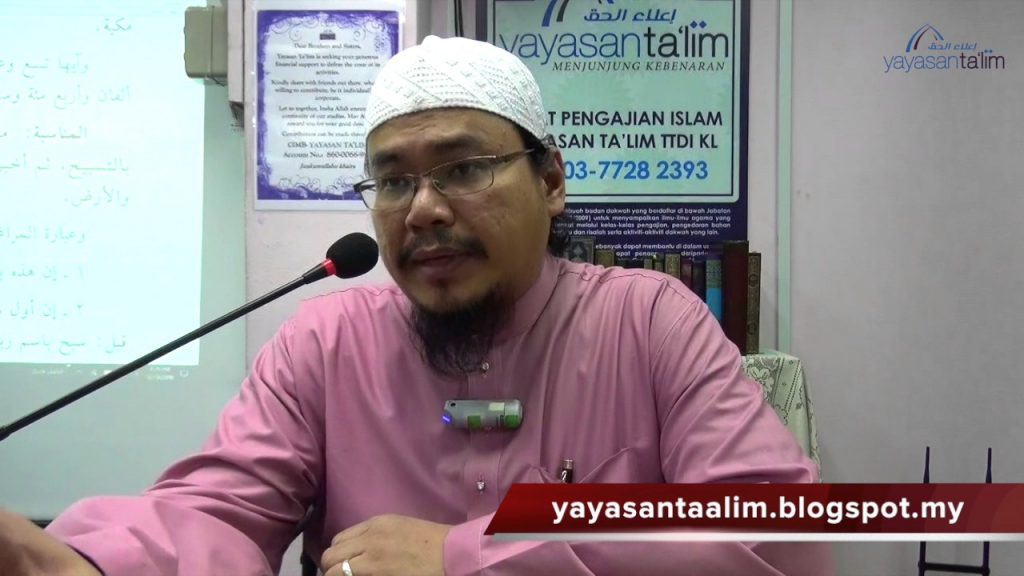 Kelas Tatacara Penerimaan Ilmu & Penghujahan Agama diajar oleh Ustaz Adli (hafizahullaah), Kelas 29. Kitab: Manhaj At-Talaqqi Wal-Istidlal Baina Ahlus-Sunnah Wal Mubtadi’ah oleh Ahmad Bin AbdurRahman As Suwayyan Setiap Rabu 9:45 pagi di Yayasan Ta’lim ———————————————————————– Yayasan Ta’lim adalah sebuah badan dakwah yang berdaftar di bawah Jabatan Perdana Menteri (PPAB-02/2009) untuk menyampaikan ilmu-ilmu agama yang […]