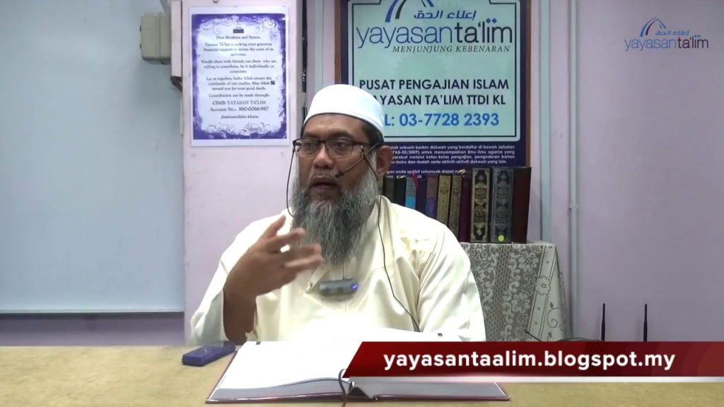 Kelas pengajian kitab hadith Riyadus Salihin, diajar oleh Ustaz Azzahari Murad (hafizahullaah) di Yayasan Ta’lim. Setiap hari Selasa,10:00 pagi. ———————————————————————– Yayasan Ta’lim adalah sebuah badan dakwah yang berdaftar di bawah Jabatan Perdana Menteri (PPAB-02/2009) untuk menyampaikan ilmu-ilmu agama yang sahih kepada masyarakat melalui kelas-kelas pengajian, pengedaran bahan bacaan seperti buku-buku dan risalah serta aktiviti-aktiviti dakwah […]