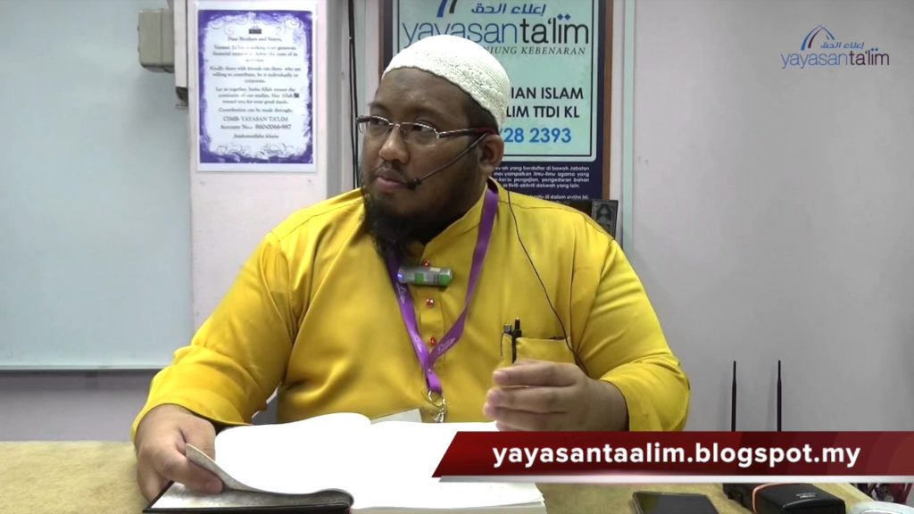 Kelas pengajian “Jalan Golongan Yang Selamat” diajar oleh Ustaz Azzahari Murad (hafizahullaah) di Yayasan Ta’lim, TTDI. Kelas dijalankan setiap hari Khamis 11:30 pagi mulai 17 April 2014. Kitab: Manhaj Al-Firqah An-Najiyah karangan Sheikh Muhammad Ibn Jamil Zainu (rahimahullaah) ———————————————————————– Yayasan Ta’lim adalah sebuah badan dakwah yang berdaftar di bawah Jabatan Perdana Menteri (PPAB-02/2009) untuk menyampaikan […]
