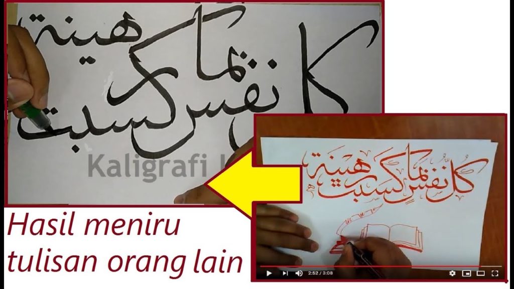 Bagaimana jadinya kalau ditiru tulisan orang lain dengan menggunakan spidol/pen mata tajam jenama ‘Sharpie’? Mari saksikan video ini dibuat secara live tutorial menggunakan tangan kidal untuk membuat tulisan khat sulus dari surah Al-Muddassir ayat 38 kaligrafi arab. (15)