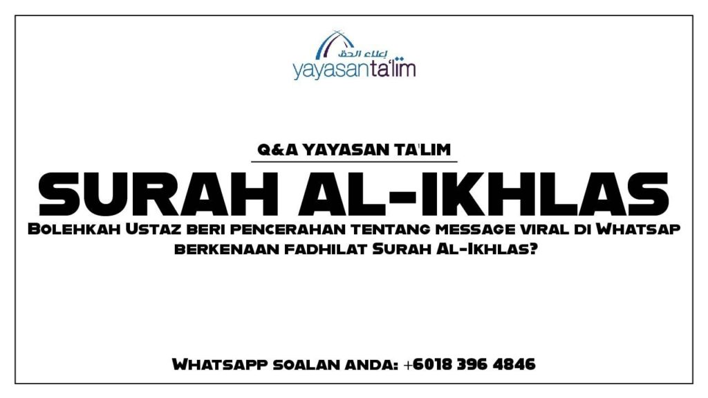 Q&A Yayasan Ta’lim: Fadhilat Surah Al-Ikhlas