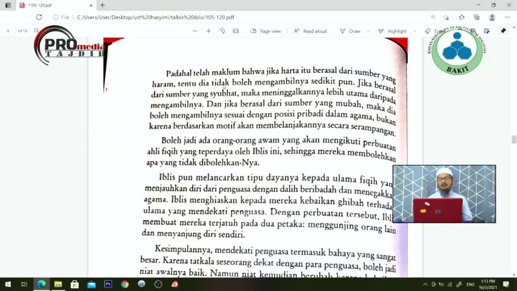 16-03-2021 Ustaz Ahmad Hasyimi : Syarah Talbis Iblis
