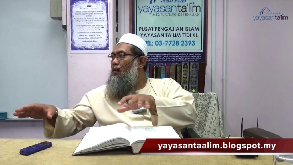Kelas Tatacara Penerimaan Ilmu & Penghujahan Agama diajar oleh Ustaz Adli Mohd Saad (hafizahullaah), Kelas 59. Kitab: Manhaj At-Talaqqi Wal-Istidlal Baina Ahlus-Sunnah Wal Mubtadi’ah oleh Ahmad Bin AbdurRahman As Suwayyan Setiap Rabu 9:45 pagi di Yayasan Ta’lim ———————————————————————– Yayasan Ta’lim adalah sebuah badan dakwah yang berdaftar di bawah Jabatan Perdana Menteri (PPAB-02/2009) untuk menyampaikan ilmu-ilmu […]