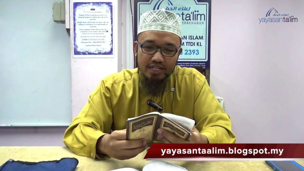 Kelas Ustaz Yunus Zainal (hafizahullaah) Serial Aqidah Islam [Jilid 3]: Dunia Jin & Syaitan karangan Dr Umar Sulaiman Al Ashqar. Setiap Selasa 8:15 malam di Yayasan Ta’lim ———————————————————————- Yayasan Ta’lim adalah sebuah badan dakwah yang berdaftar di bawah Jabatan Perdana Menteri (PPAB-02/2009) untuk menyampaikan ilmu-ilmu agama yang sahih kepada masyarakat melalui kelas-kelas pengajian, pengedaran bahan […]