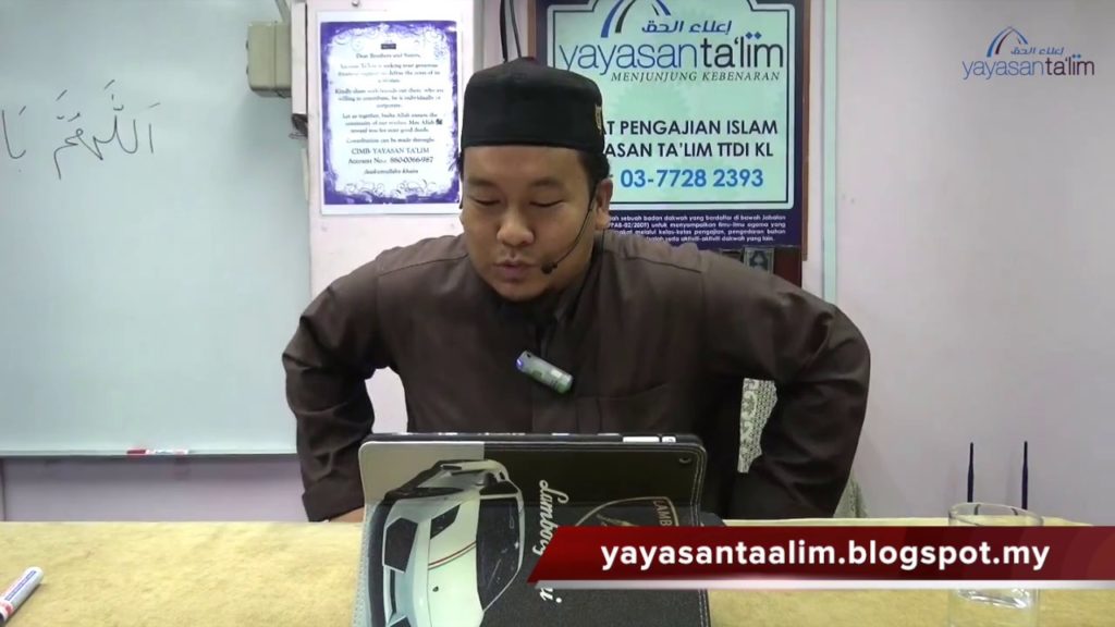 Kelas Tatacara Penerimaan Ilmu & Penghujahan Agama diajar oleh Ustaz Adli Mohd Saad (hafizahullaah), Kelas 81. Kitab: Manhaj At-Talaqqi Wal-Istidlal Baina Ahlus-Sunnah Wal Mubtadi’ah oleh Ahmad Bin AbdurRahman As Suwayyan Setiap Rabu 9:45 pagi di Yayasan Ta’lim ———————————————————————– Yayasan Ta’lim adalah sebuah badan dakwah yang berdaftar di bawah Jabatan Perdana Menteri (PPAB-02/2009) untuk menyampaikan ilmu-ilmu […]