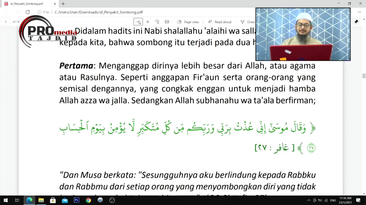 23-01-2021 Ustaz Ahmad Hasyimi : Sifat Sombong Penyakit Bagi Hati